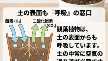 観葉植物の土隠しは本当に必要?土隠しすることで、通気性の低下による蒸れや根腐れ、カビ・コバエのリスクを解説。実体験をもとに、基本は何も載せない理由と、どうしても隠したい場合の正しい素材選びを紹介します。